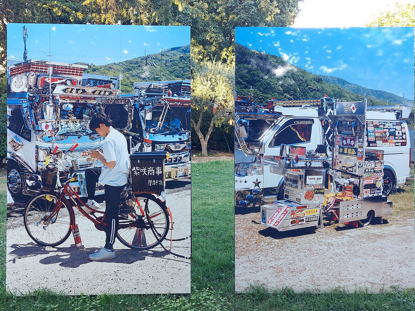 Историята разказва, че манията по персонализираните автомобили достига Япония през 70-те години под влияние на следвоенната американска култура. Вдъхновени от американските украсени камиони, японците преосмислят „декотора“ като изтънчено и отдадено ремесло. Чрез това хоби ентусиастите преначертават идентичностите си и си създават мобилни аватари. Работните превозни средства — използвани за транспорт или строителство — се превръщат от своите собственици в хибридни обекти. Те продължават да смесват традиционни форми, като обновени гравюра „укийо-е“, и популярни влияния, като вдъхновените от роботските брони от научнофантастичната серия „Гъндам“ от 80-те години.