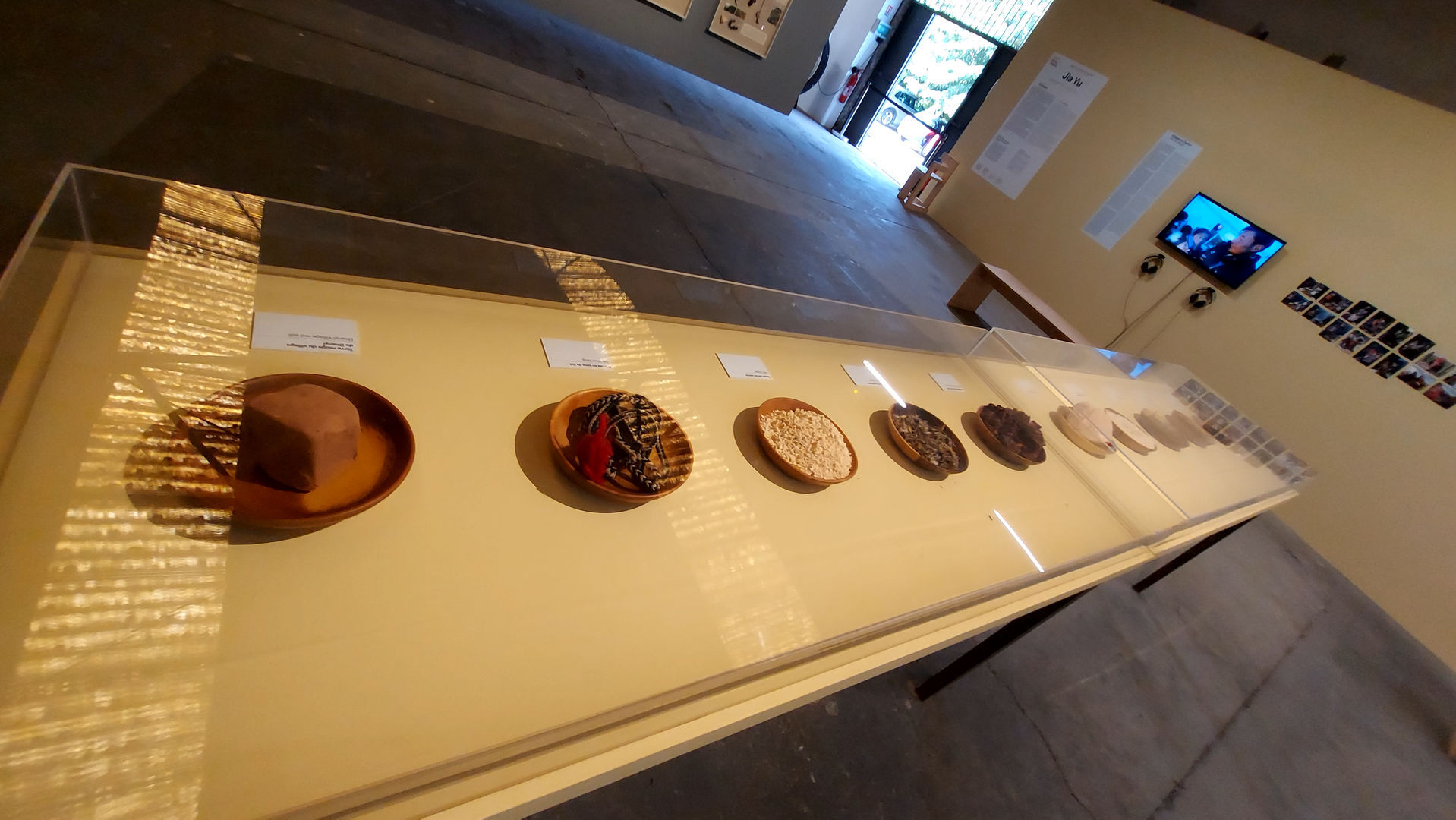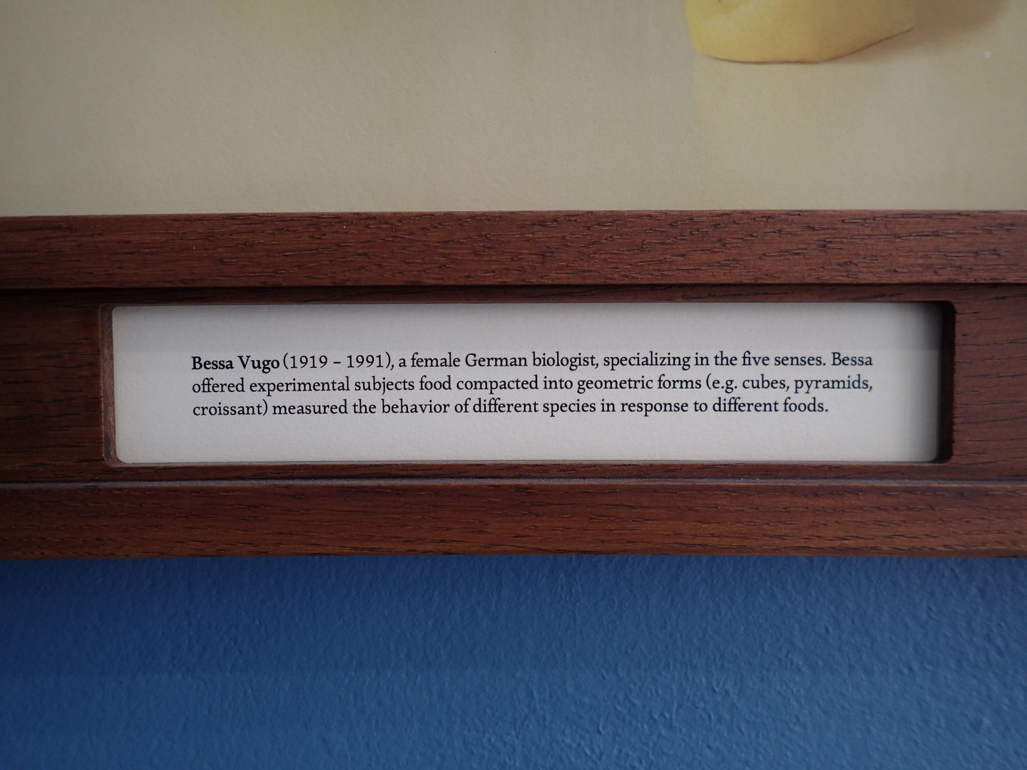 В рязък контраст друг екран показва кинетична мозайка от опаковки за храна — пластмасови прототипи, които служат като метафора на живата, еволюираща култура на непрекъснато оформяне и конструиране, отразяваща дълбоко човешка характеристика.