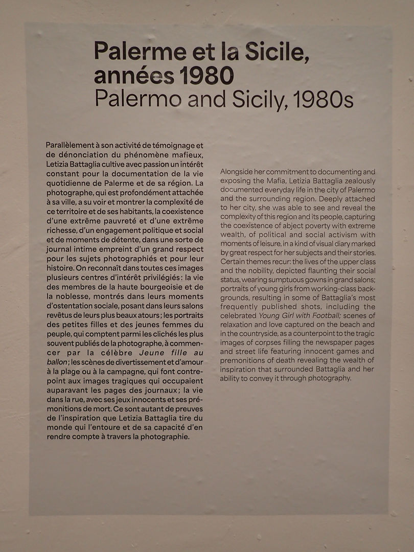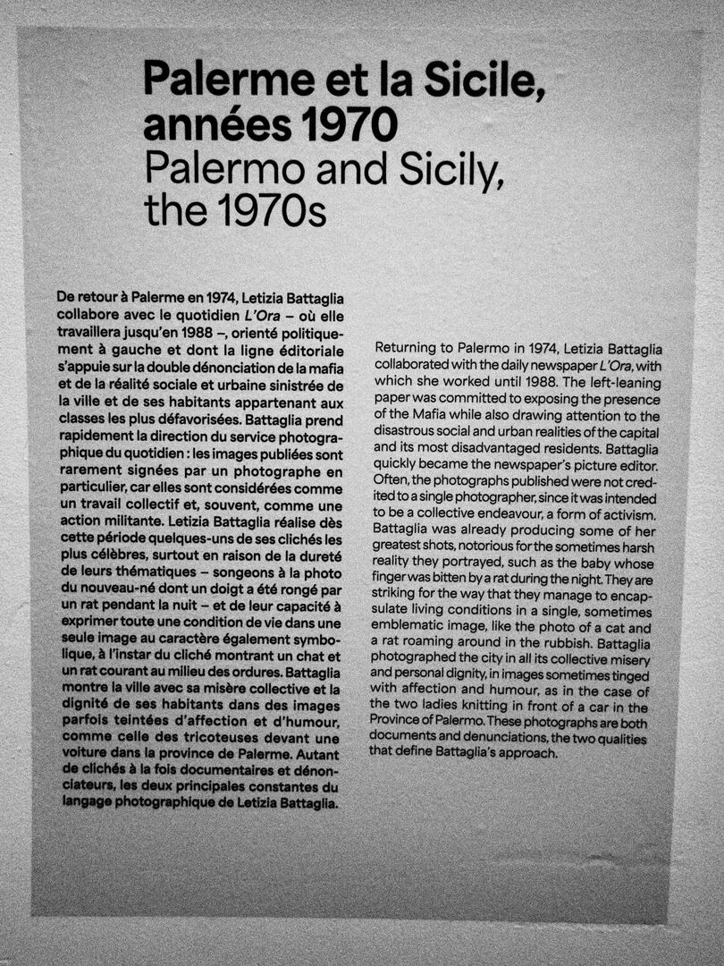 Успоредно с ангажимента си да документира и разобличава мафията, Летиция Баталия ревностно снима ежедневието в Палермо и околните райони. Дълбоко привързана към своя град, тя умее да види и разкрие неговата сложност — противопоставянето на крайна бедност и екстремно богатство, на политически и социален активизъм и моменти на удоволствие — във визуален дневник, белязан от дълбоко уважение към хората и техните истории.