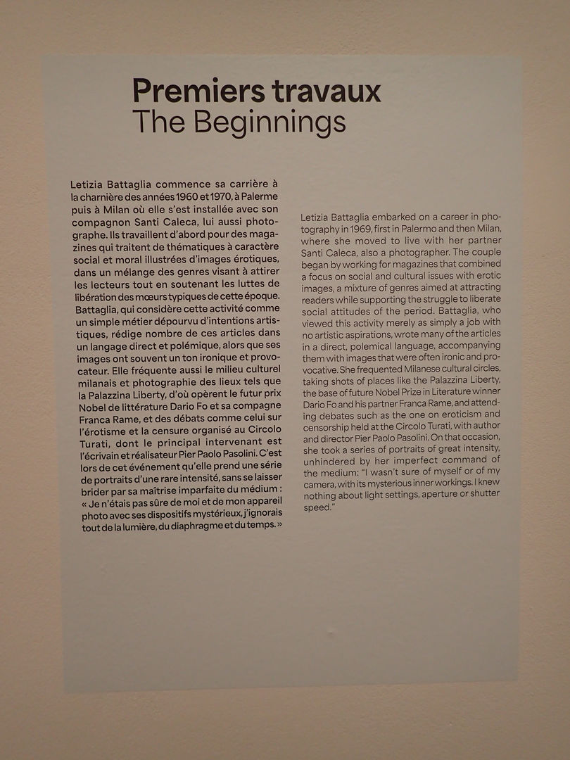Баталия не възприема това като художествен стремеж, а просто като работа. Тя пише много от статиите си в директен, полемичен стил, придружени от често иронични и провокативни снимки. Посещава миланските културни среди, снима пространства като Palazzina Liberty — базата на бъдещия Нобелов лауреат Дарио Фо и партньорката му Франка Раме — и присъства на дебати, като този за еротиката и цензурата в Circolo Turati с Пиер Паоло Пазолини.