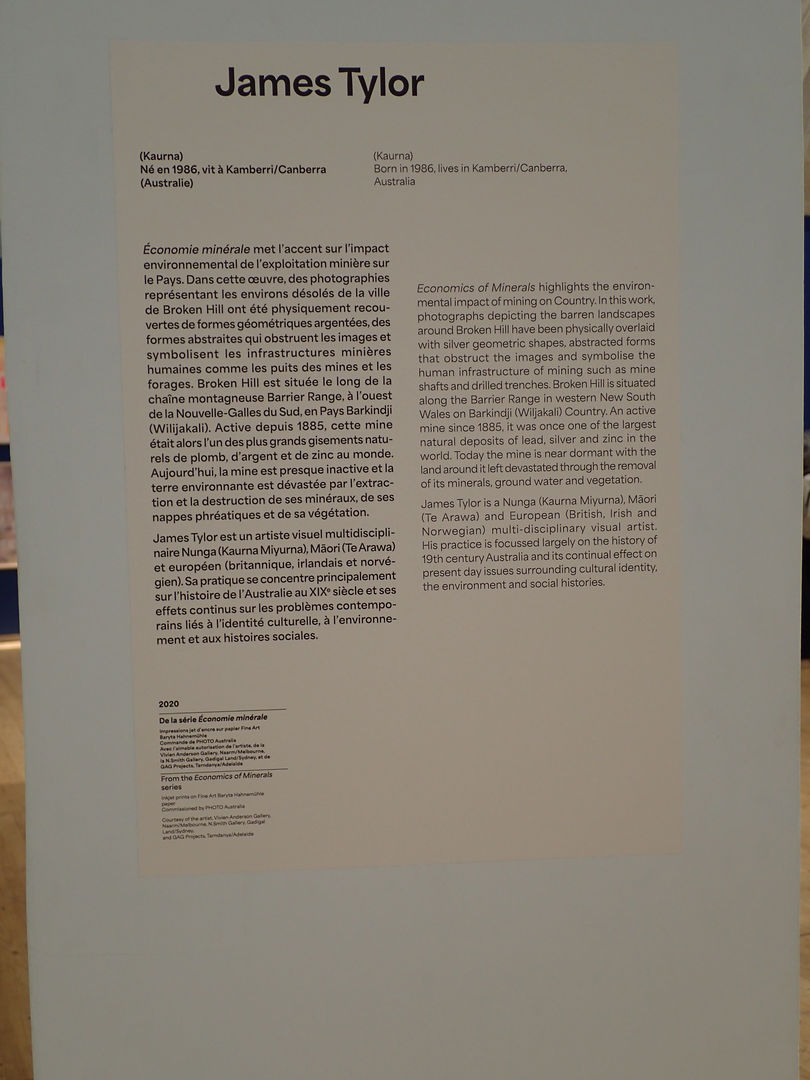 „Икономика на минералите“ подчертава екологичните последици от минното дело върху земята („Country“). В тази работа фотографиите, изобразяващи опустошените пейзажи около Броукън Хил, са физически покрити със сребърни геометрични форми — абстрактни структури, които закриват изображенията и символизират човешката инфраструктура на добива, като минни шахти и пробити канали. Броукън Хил се намира по протежението на хребета Барие (Barrier Range) в западен Нов Южен Уелс, върху земите на народа Баркинджи (Уилякали). Активна мина от 1885 г., тя някога е била едно от най-големите естествени находища на олово, сребро и цинк в света. Днес мината е почти неактивна, а земята около нея е оставена силно увредена вследствие на извличането на минерали, подземни води и растителност.