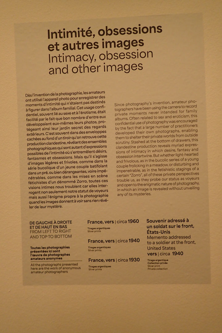 От създаването на фотографията аматьори използват камерата, за да документират частни моменти, никога предназначени за семейните албуми. Често свързани със секс и еротика, тези конфиденциални практики се улесняват от факта, че много фотографи сами проявяват снимките си — така могат да защитят своя частен свят от чужди погледи. Скривани на дъното на чекмеджета, тези тайни изображения разкриват безброй прояви на интимност, в които желание, фантазия и обсесия се преплитат.